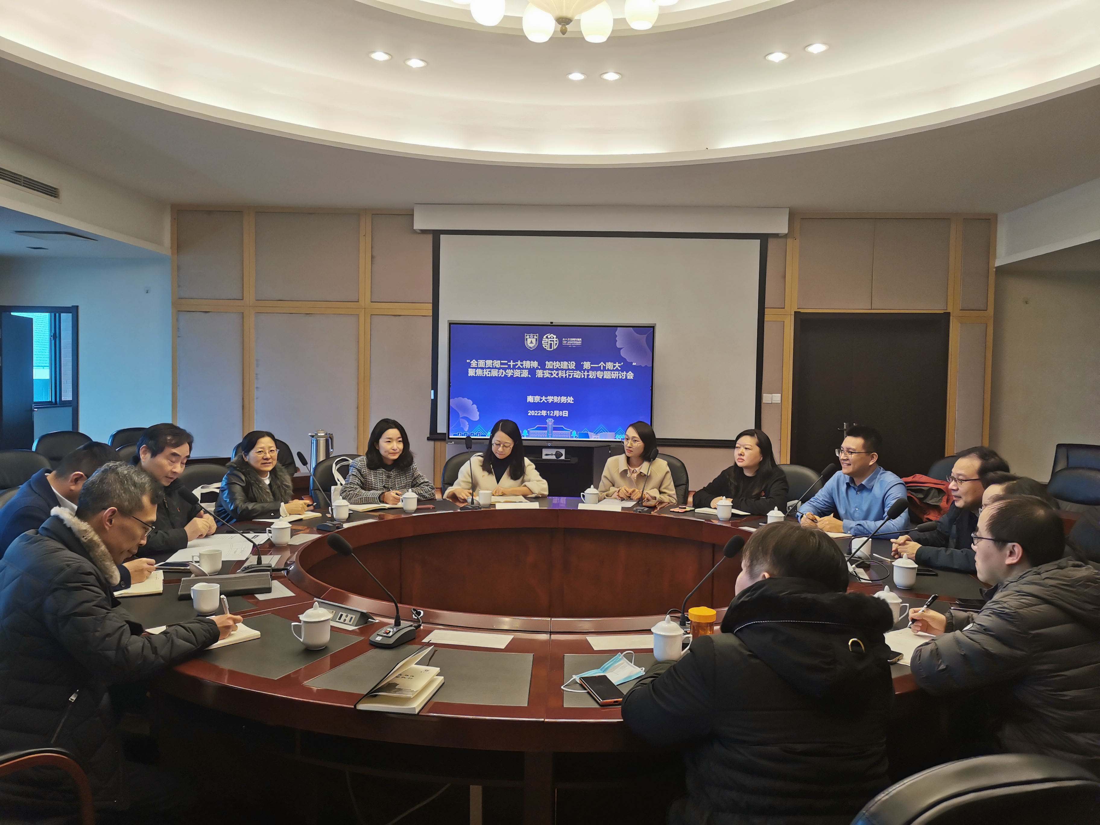 12月8日,天宫直播 与财务处共同开展“全面贯彻二十大精神 加快建设‘第一个南大’”专题研讨会。校财务处处长黄力、天宫直播 党委书记徐愫、院长成伯清、财务处相关工作人员及天宫直播 部分教职工代表参加座谈会。