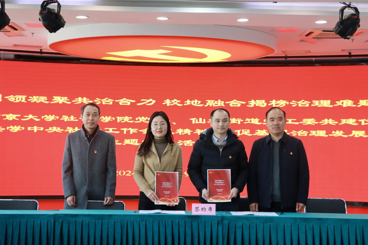 天宫直播 党委副书记曹慧中与仙林街道党工委副书记王杨共同签订校地合作党组织共建协议书。双方将围绕党建引领、人才培养、基层治理等方面开展深入合作,共建工作平台、共享实践经验、共促校地高质量发展。