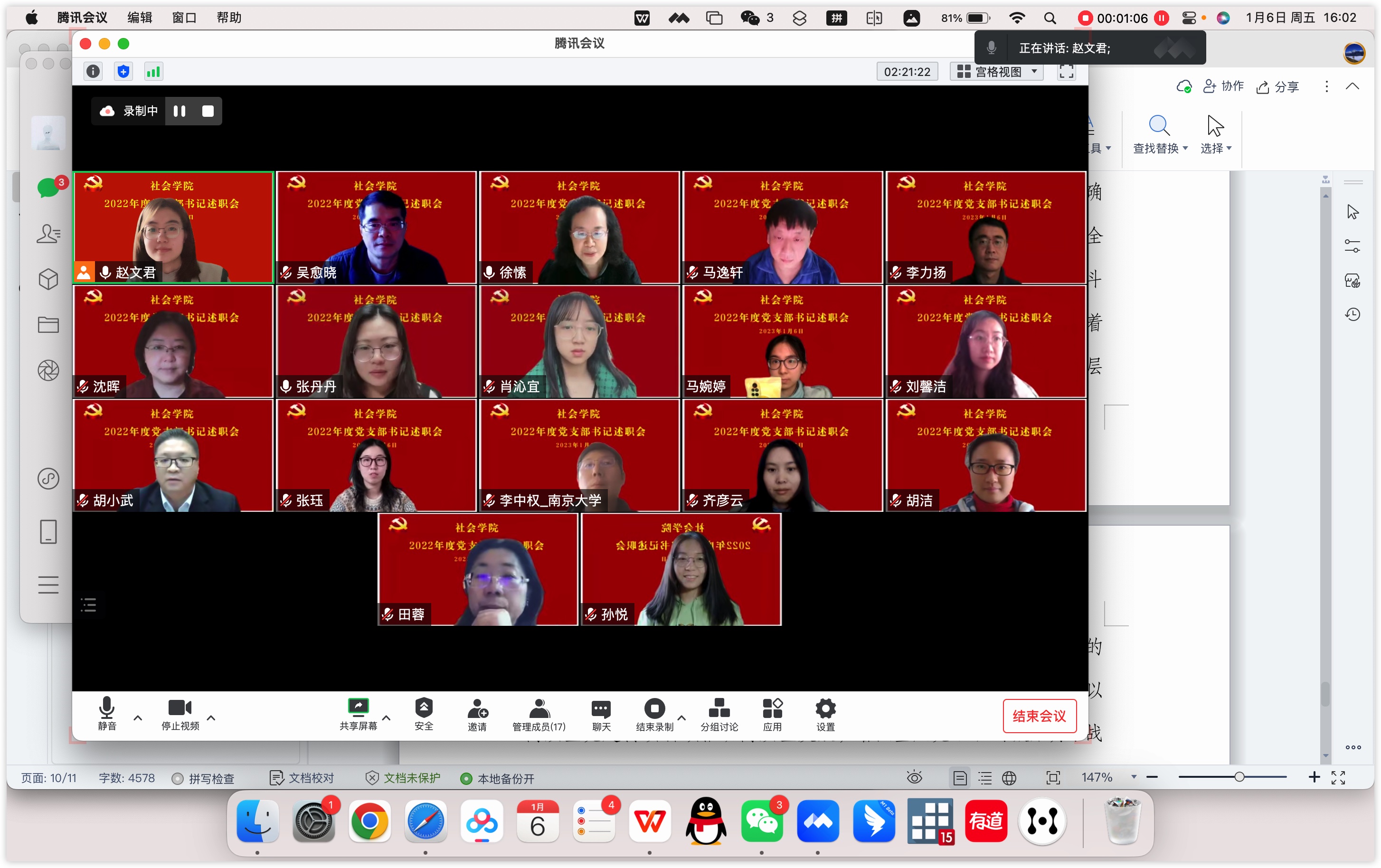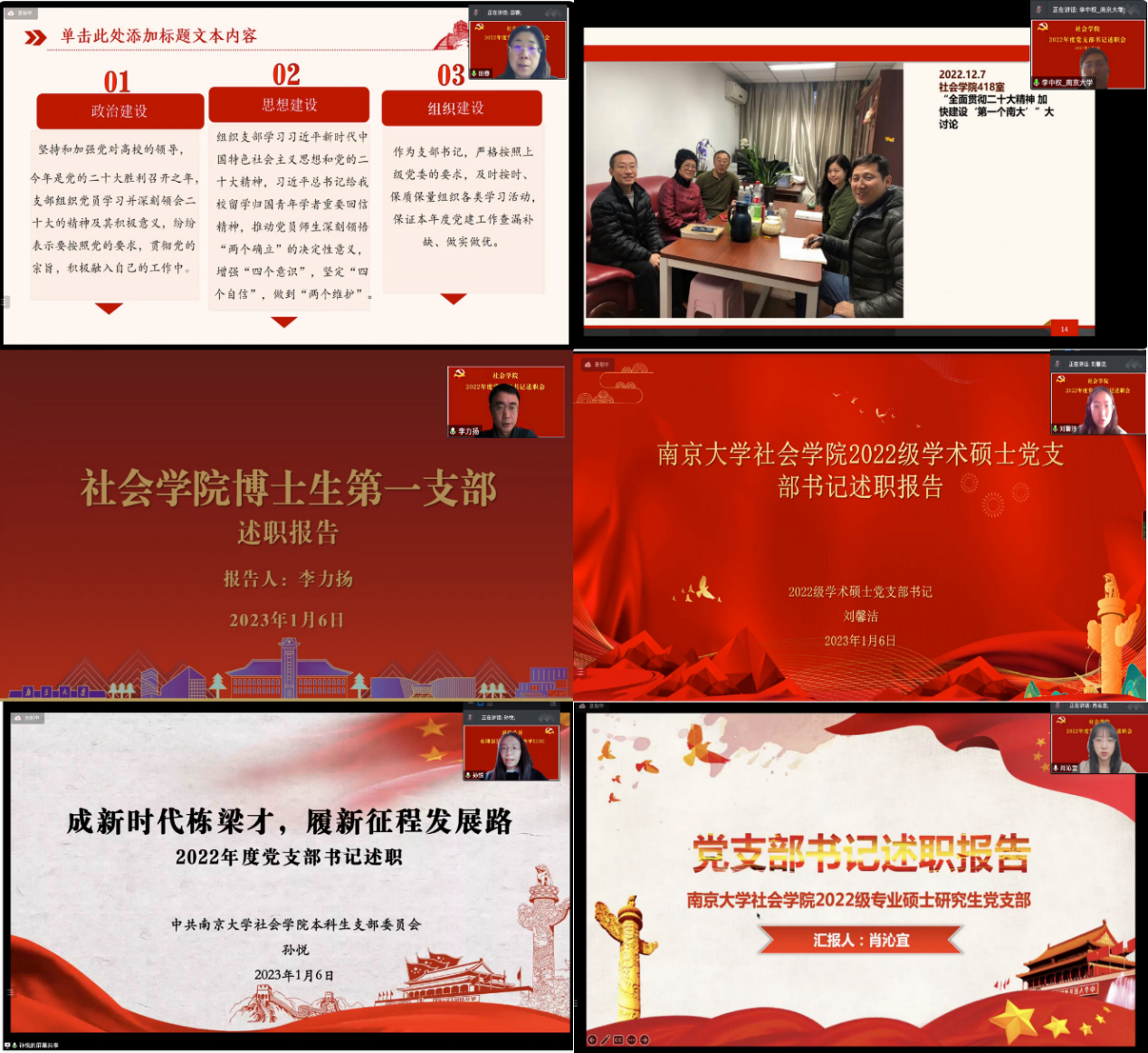 党委于2023年1月6日在线上举行2022年度党支部书记党建工作述职评议考核会。学院党委委员、12位党支部书记及部分支部委员参加次述职评议,党委书记徐愫同志主持会议。
