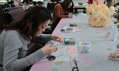 3月7日下午,学院党委书记王建富、党委副书记并院长吴愈晓、副院长郭未、工会主席郭浩等参加了学院女教职工们制作掐丝珐琅杯垫的活动,并为她们送上鲜花和节日祝福。