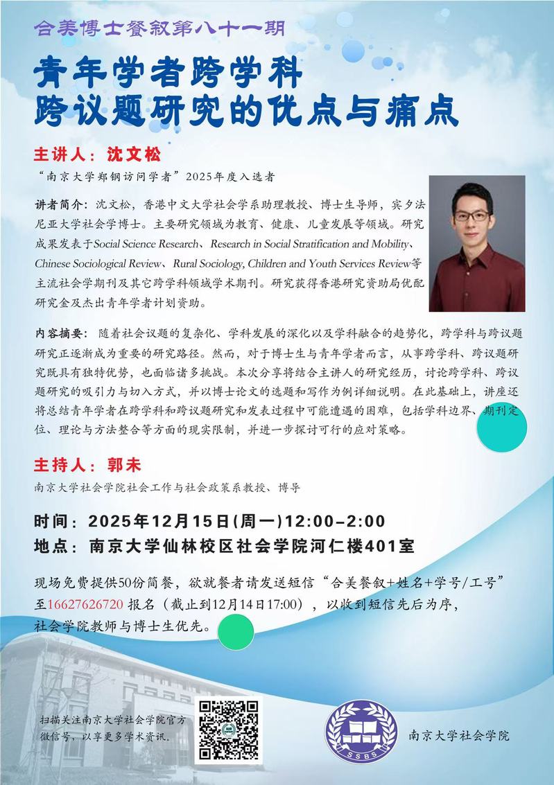 讲座 | 合美博士餐叙第八十一期