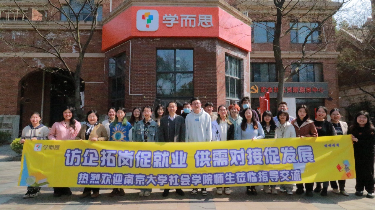 为了深入学习贯彻党的二十大精神,积极响应党中央、国务院关于高校毕业生就业工作的政策号召与决策部署。天宫直播 团委与研会就创部于2024年3月22日下午共同策划并组织开展了“访企拓岗促就业”专项行动。在学院党委书记王建富、党委副书记沈晖、团委副书记邵晓宁以及本科生辅导员刘艺的带领下,十余名本硕同学深入参访了学而思南京仙鹤门校区和江苏匠工营国规划设计有限公司,通过实地参观与调研,深入了解行业发展动态、探索就业机遇,并为企业与学院之间的深度合作搭建桥梁。此行动旨在进一步推动校企合作,拓展学生就业渠道,助力学院学子实现高质量充分就业。