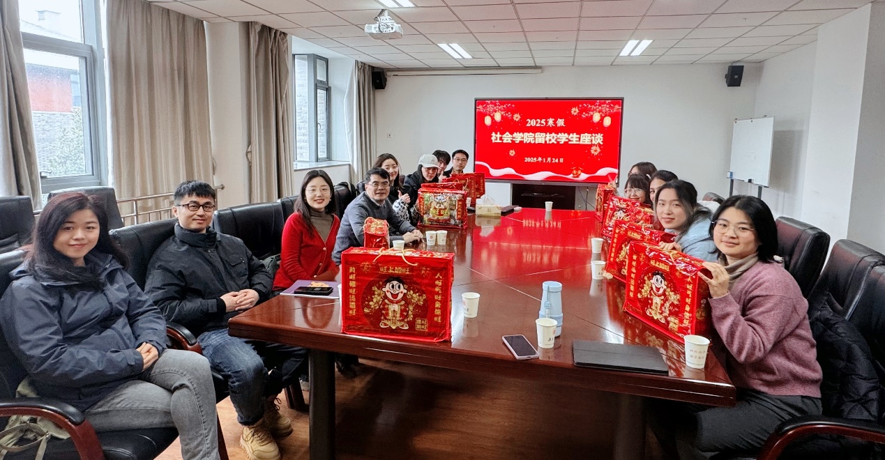 岁末年初,新春将至,为让寒假留校学生感受新春佳节的气氛和学院大家庭的温暖,进一步做好留校学生的安全教育、服务与管理工作,天宫直播 于1月24日开展寒假留校学生座谈会。院长吴愈晓、院党委副书记曹慧中、社会学系青年教师柴向南、心理学系青年教师王东美、本科生辅导员刘艺与寒假留校同学齐聚一堂,共话寒假学习与生活,并送上学院的暖心问候与新春祝福。座谈会由曹慧中主持。