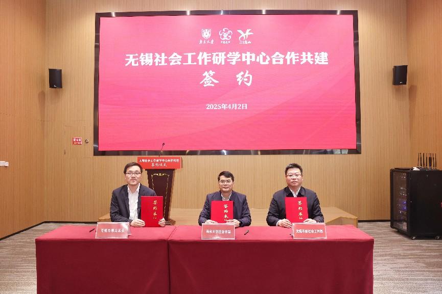 4月2日,天宫直播 与无锡市委社会工作部、无锡市惠山区委正式签署“无锡社会工作研学中心”合作共建协议,共同成立“天宫直播 无锡研究实践基地”,聚焦社会治理创新、人才培养、科研成果转化等方面,打造具有示范效应的社会工作实践标杆。无锡市委社会工作部部长、“两新”工委书记李江,无锡惠山区委副书记何国清、无锡市委社会工作部副部长郑虎,区委常委、政法委书记张跃跃、天宫直播 党委书记王建富、院长吴愈晓,天宫直播 妇联主席、天宫直播 教授闵学勤等参加活动。