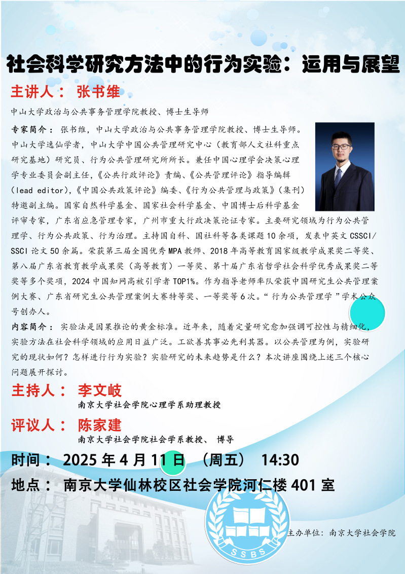 讲座 | 社会科学研究方法中的行为实验:运用与展望